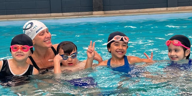 Aulas personalizadas para todas as idades, respeitando os diferentes níveis de habilidades aquáticas.